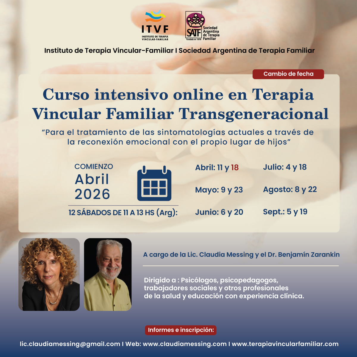 11 de abril 2026: Curso intensivo online en Terapia Vincular Familiar Transgeneracional