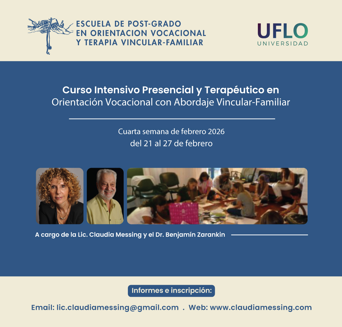 21 de febrero 2026. Nueva edición del Curso Intensivo Presencial y Terapéutico en Orientación Vocacional con Abordaje Vincular Familiar.